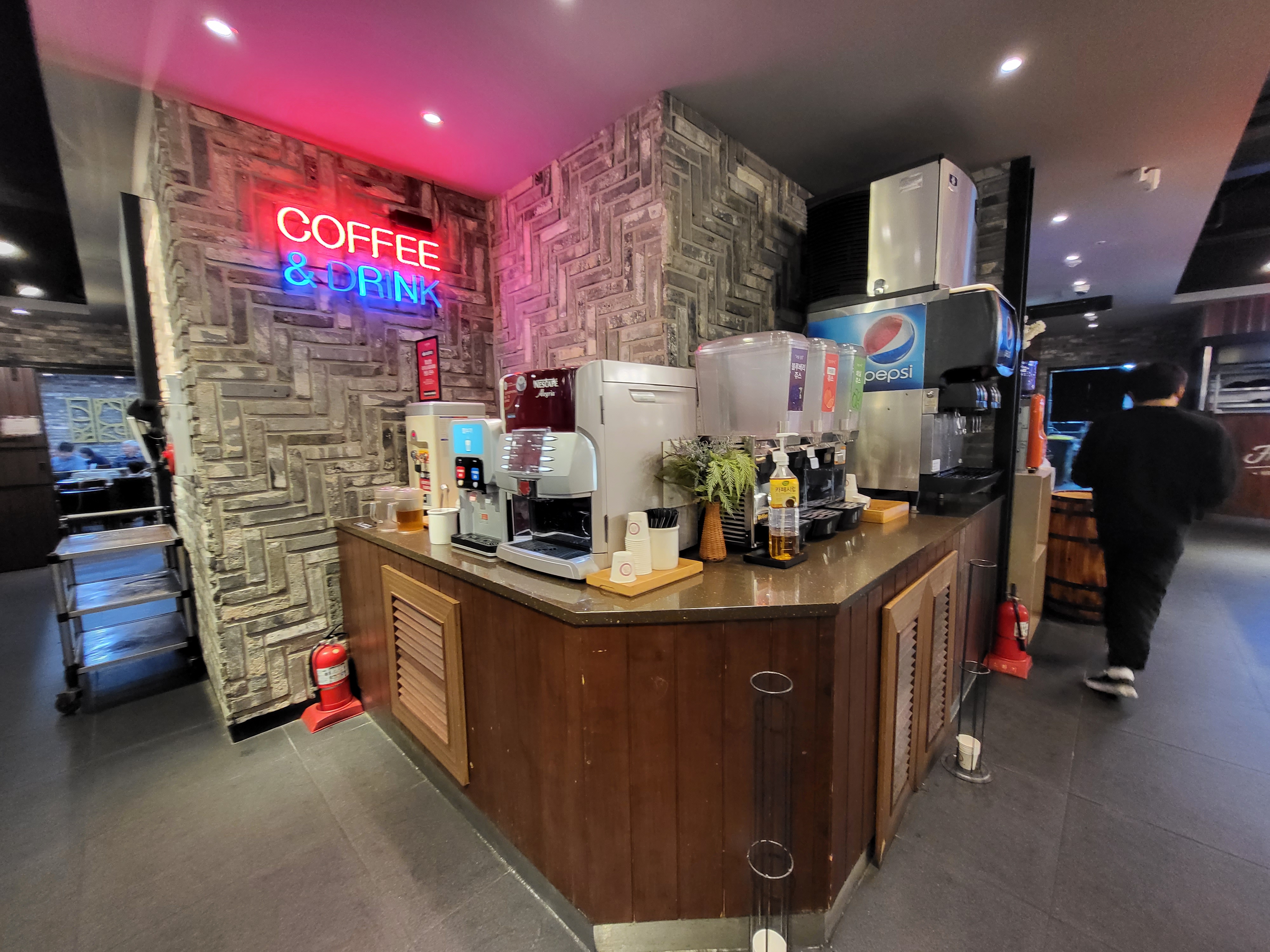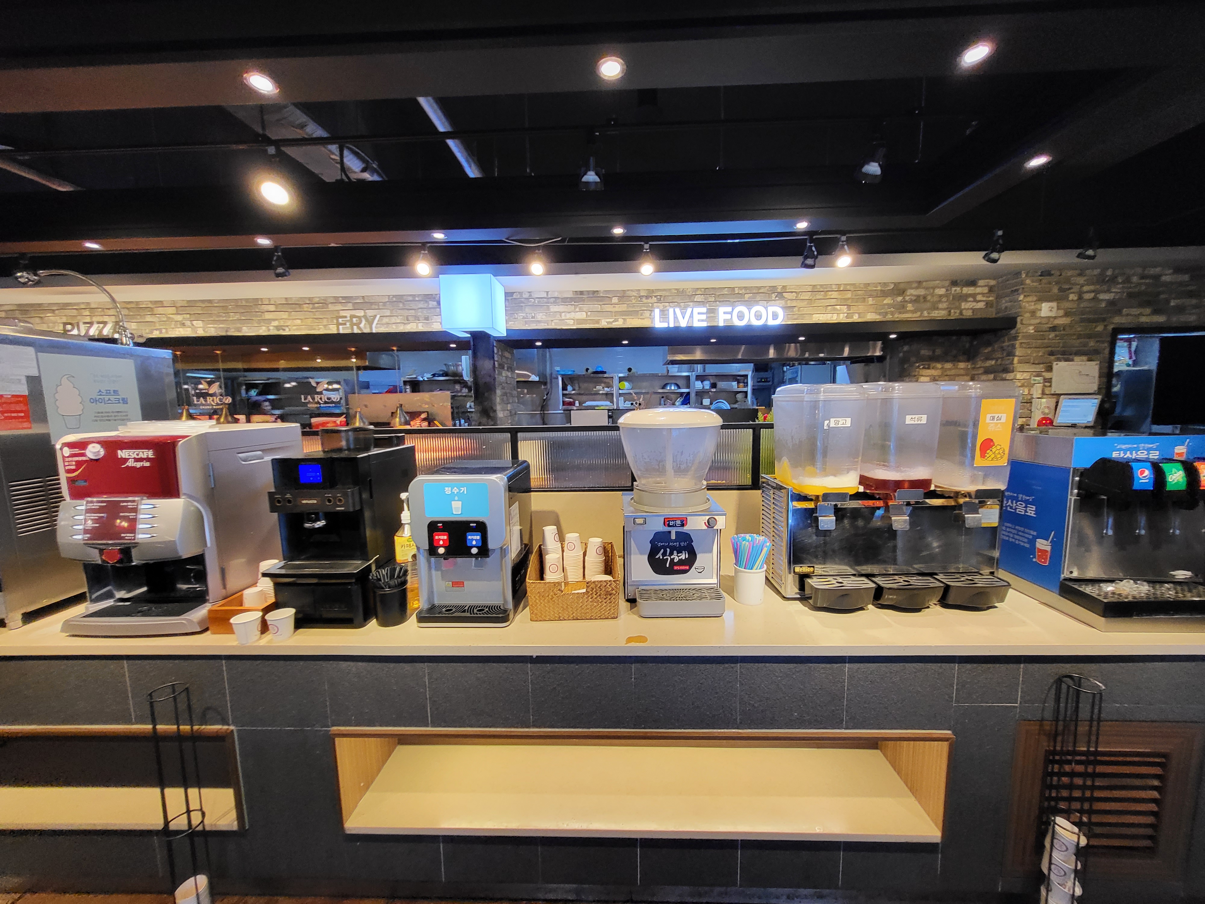 음료는 모두 무료다. 그런데 좀 관리가 안되고 있었다. 콜라에 탄산만 들어있고 콜라액을 안 넣어놓았더라. 집에 갈때쯤 누군가 말하니까 그때 채워졌다.