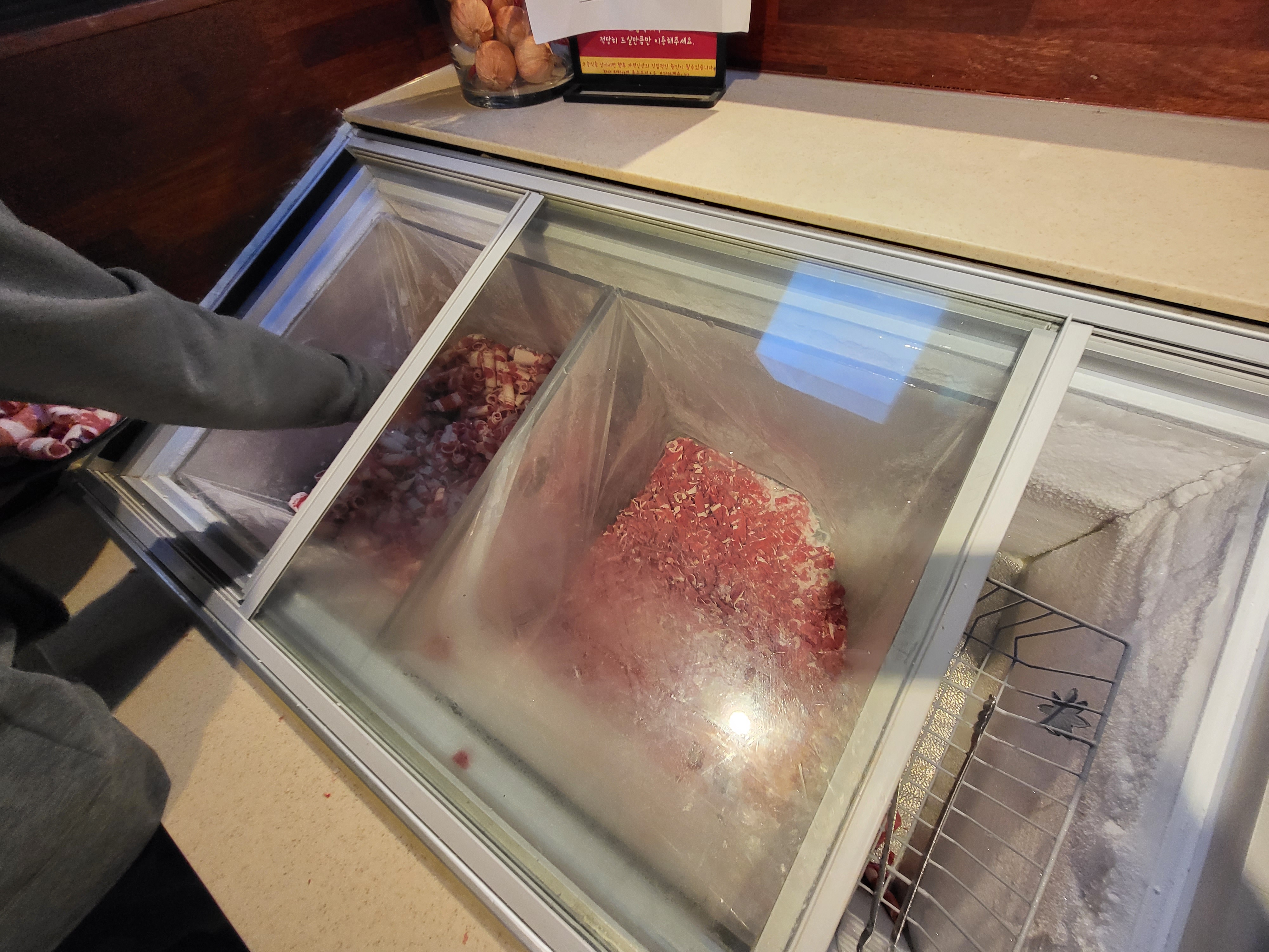 무한리필 답게 고기가 아주 뭉텅이로 있다. 옴폭한 그릇에 못 가져가게 한다.