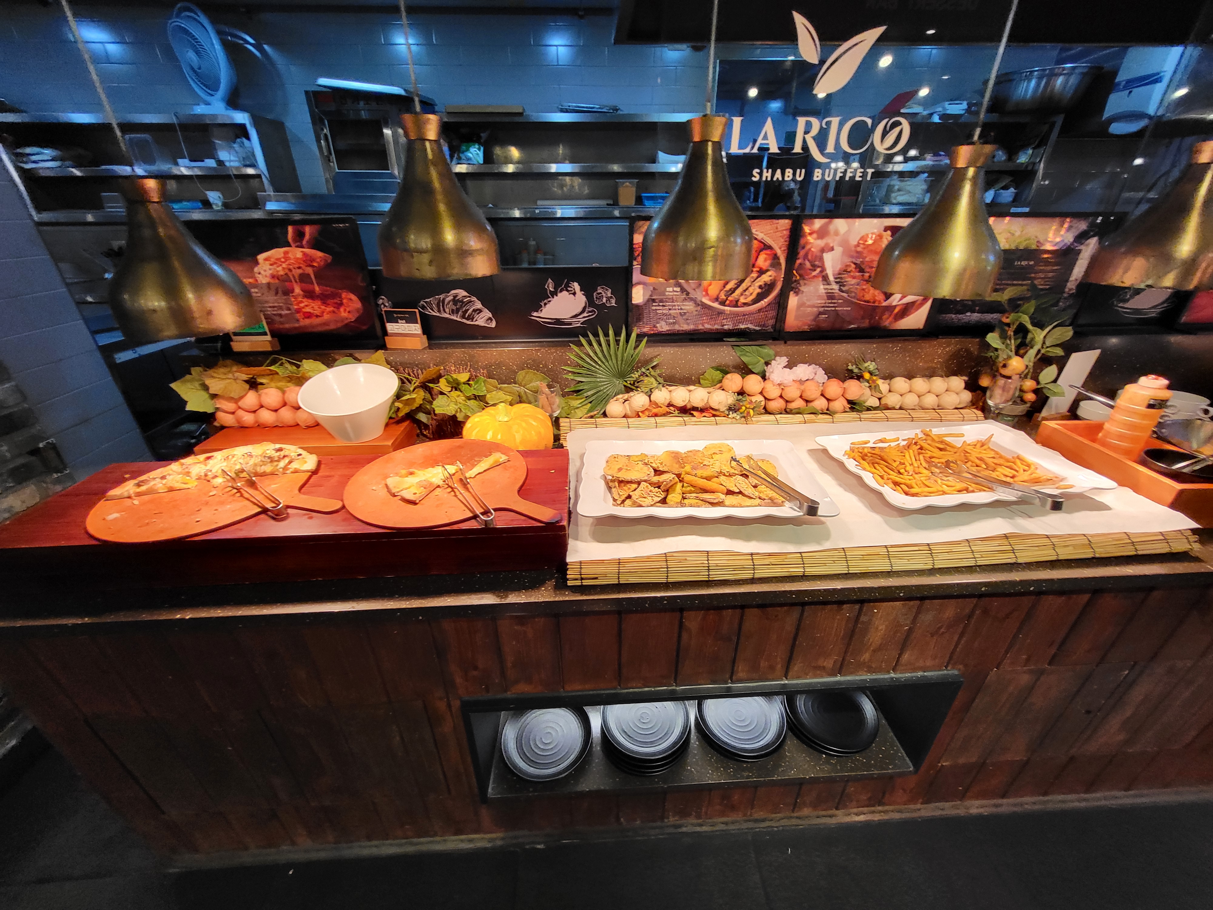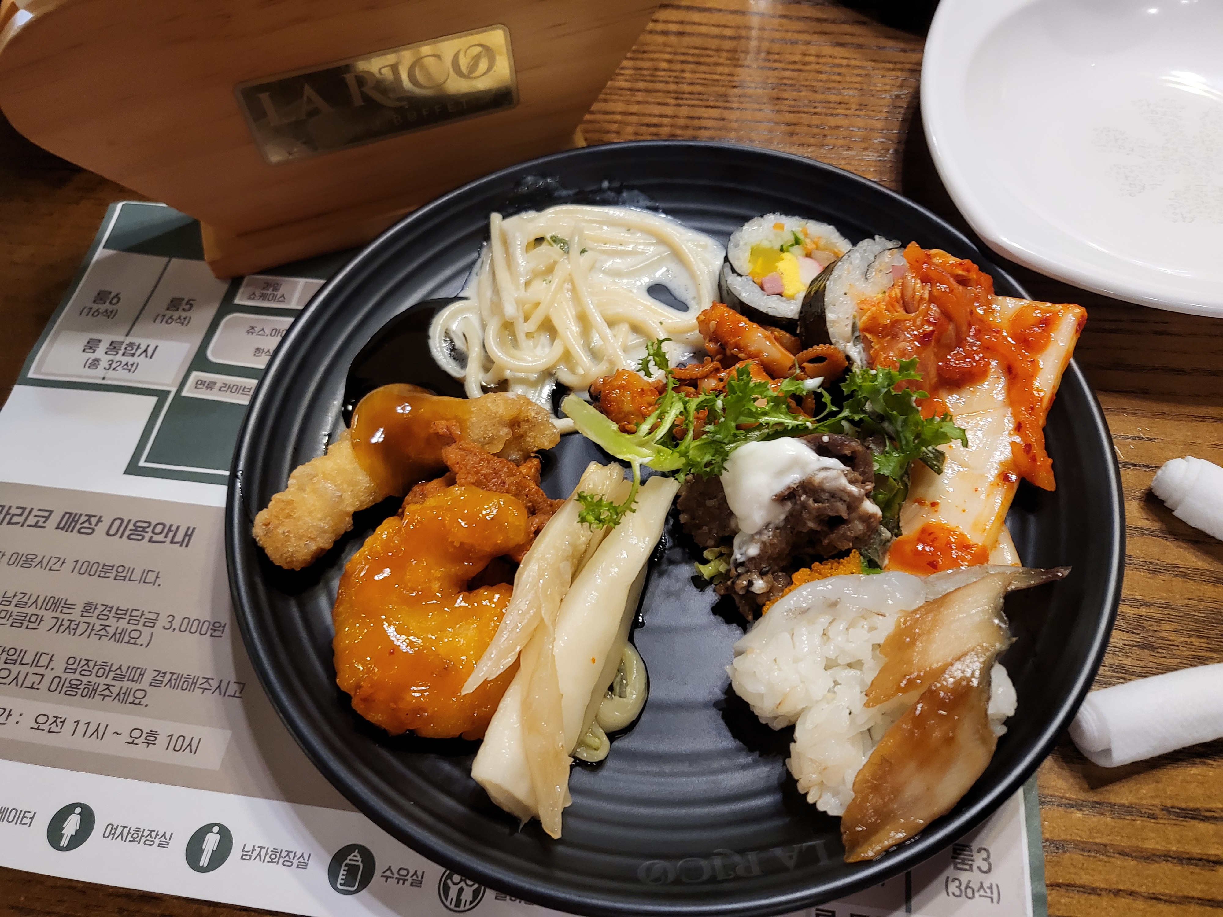 그리고 그 결과물.. 라리코에서 샤브 다음으로 메인이었던건 스테이크였는데 이제 스테이크는 안 준단다. 초밥코너가 꽤 길게 있어서 초밥도 인기가 좋은데 보이는가... 빈접시 텅텅... 아직 다섯시 45분이었는데여....