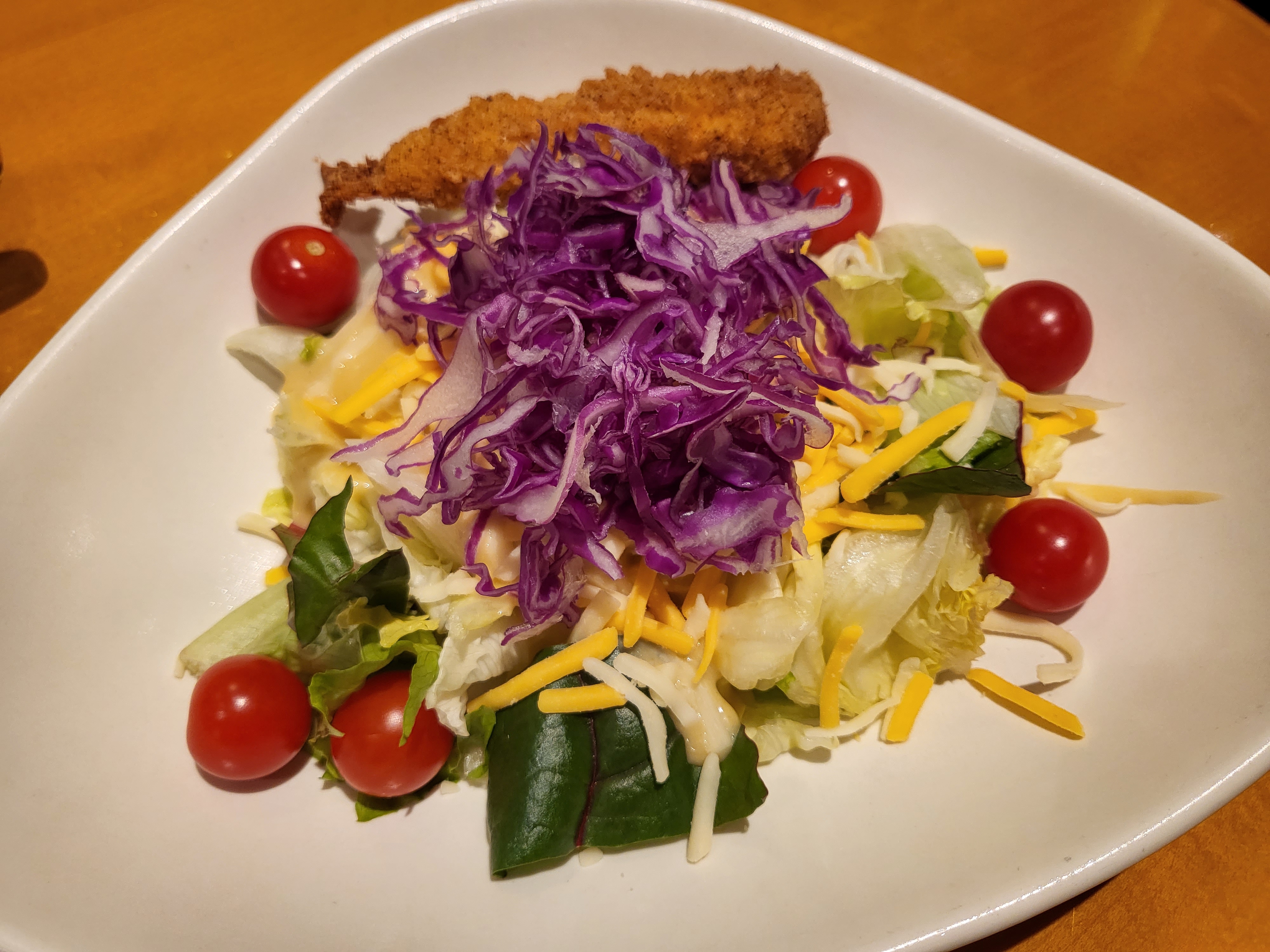 스프는 항상 샐러드로 바꿔 먹는다. 아웃백 샐러드는 야채가 언제나 싱싱해서 좋다. 두 개 모두 샐러드로 변경한뒤에 치킨텐더 하나를 추가하면 이것이 바로 치킨샐러드. 샐러드 변경비용은 천4백원. 치킨텐더는 2천9백원.