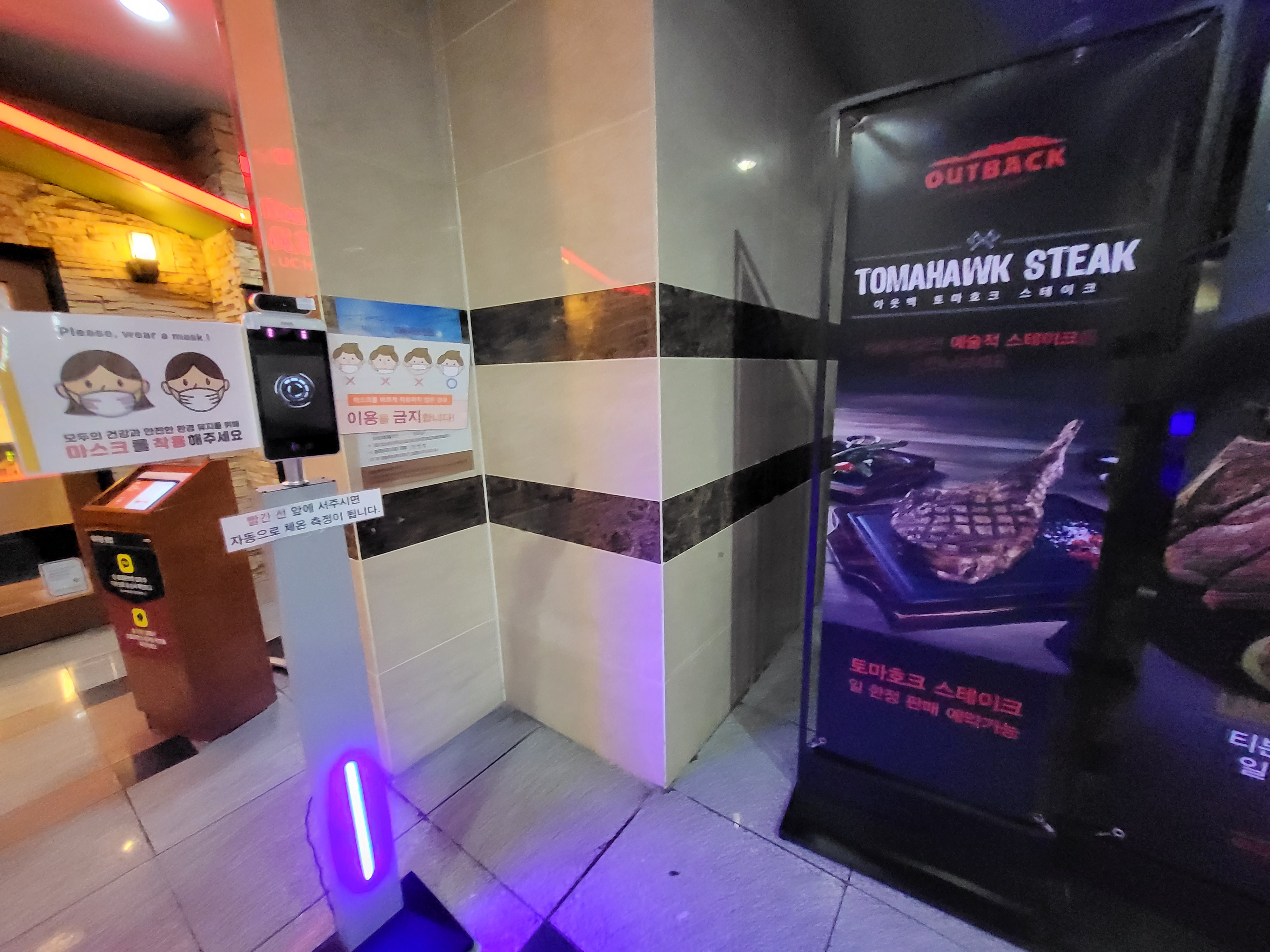 입구 밖에서 체온체크하고 대기까지 걸고 들어가야 한다.