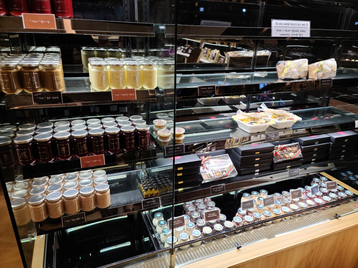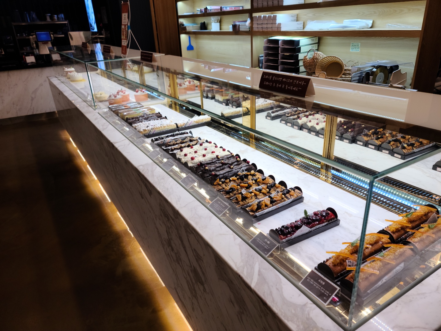 케이크 진열장들. 나는 이집 파운드 케이크 매우 좋아하고 둥은 그냥 그래한다.
