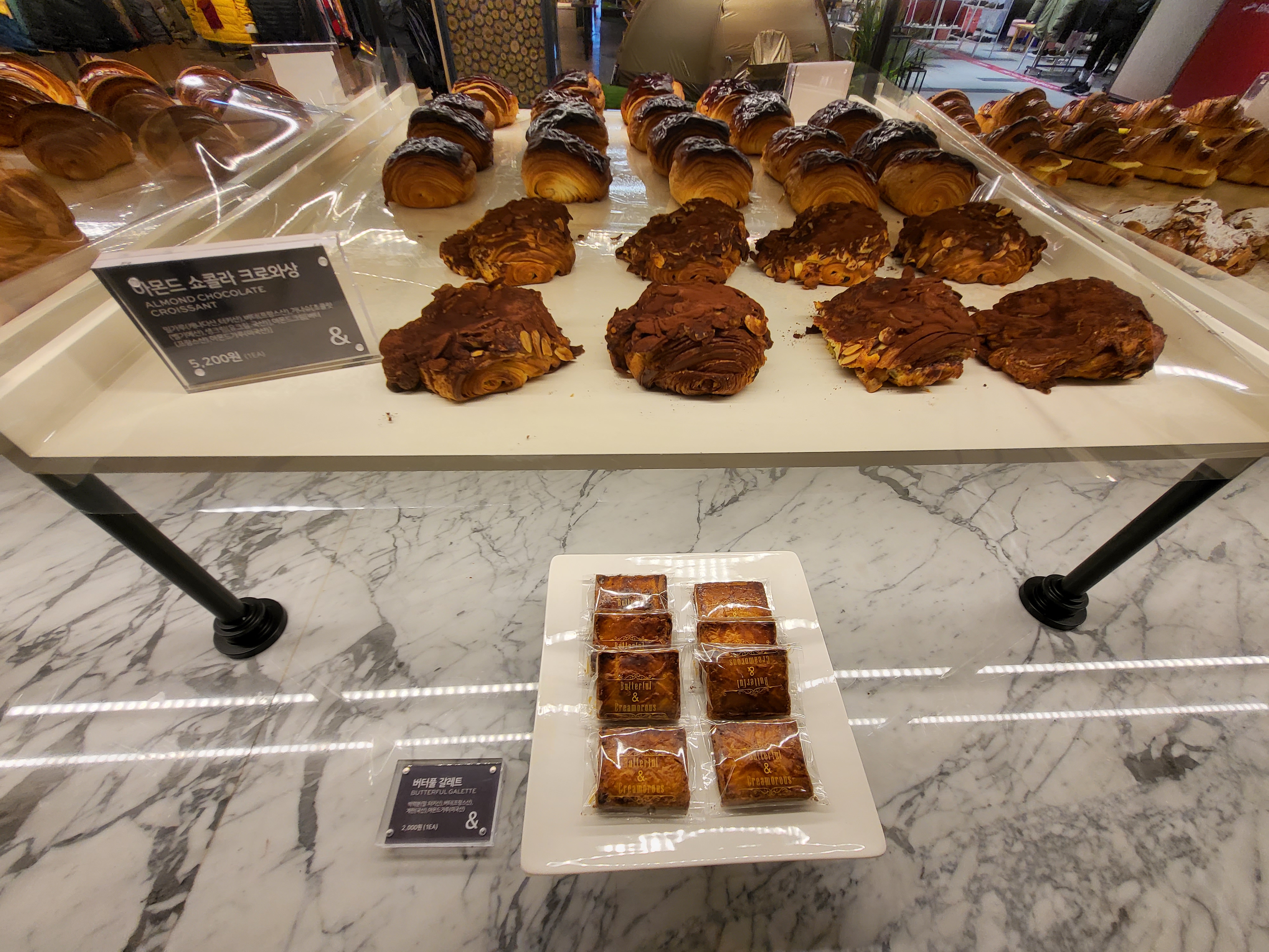 크로와상은 물론이거니와 다른 빵들도 최근 먹은 빵집 중에 원탑에 넣어도 될 정도의 맛이었음. 뭐랄까 왜 좋은 재료를 강조하는 지 알 것 같았다. 빵 만들줄 모르지만 먹으면서 내내 이건 좋은 재료를 썼다는 말이 진짜인가보다 싶을정도로 프레쉬한 느낌이다. 진한데 느끼하지 않고 풍미가 있으면서도 물리지 않을 맛.