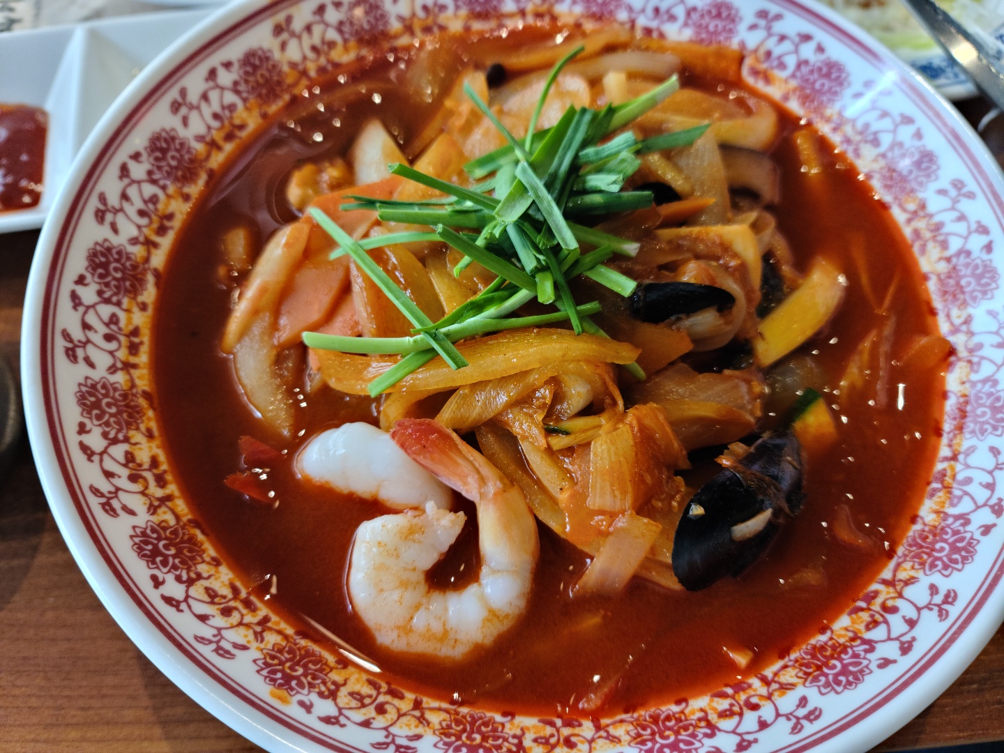 해산물의 가볍지만 시원한 그런 베이스는 아니고 묵직하고 담백한 국물이다.