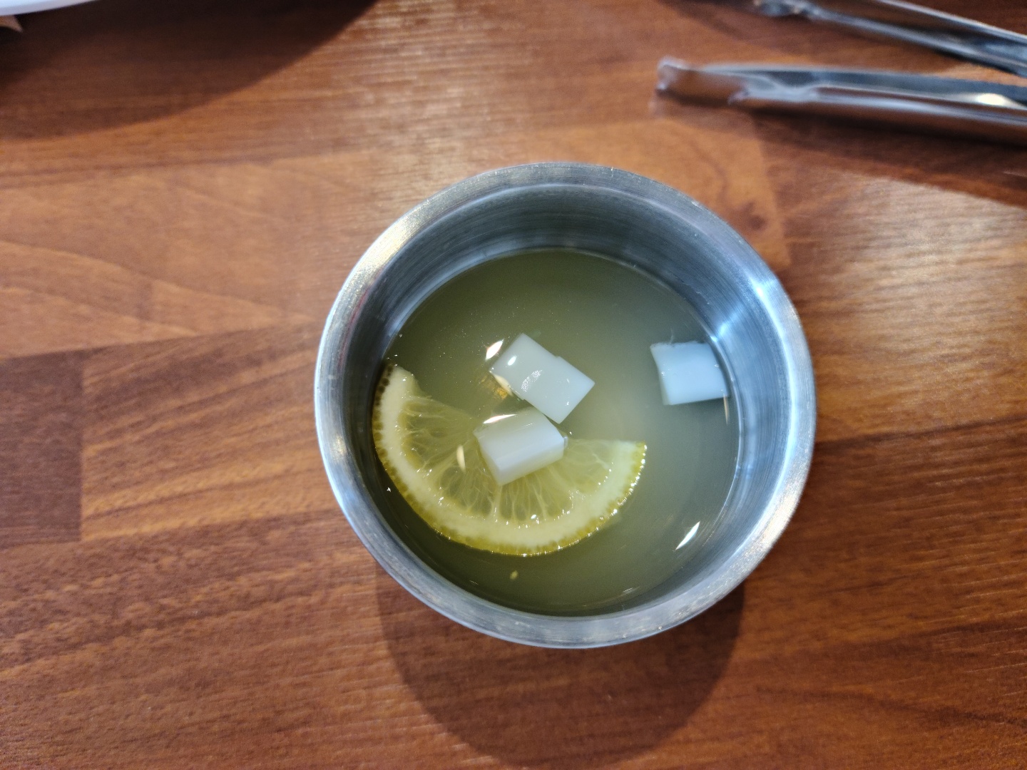 스텐컵에 줘서 인지 다행히 식사 끝날 때까지 차가워서 먹기 좋았다.