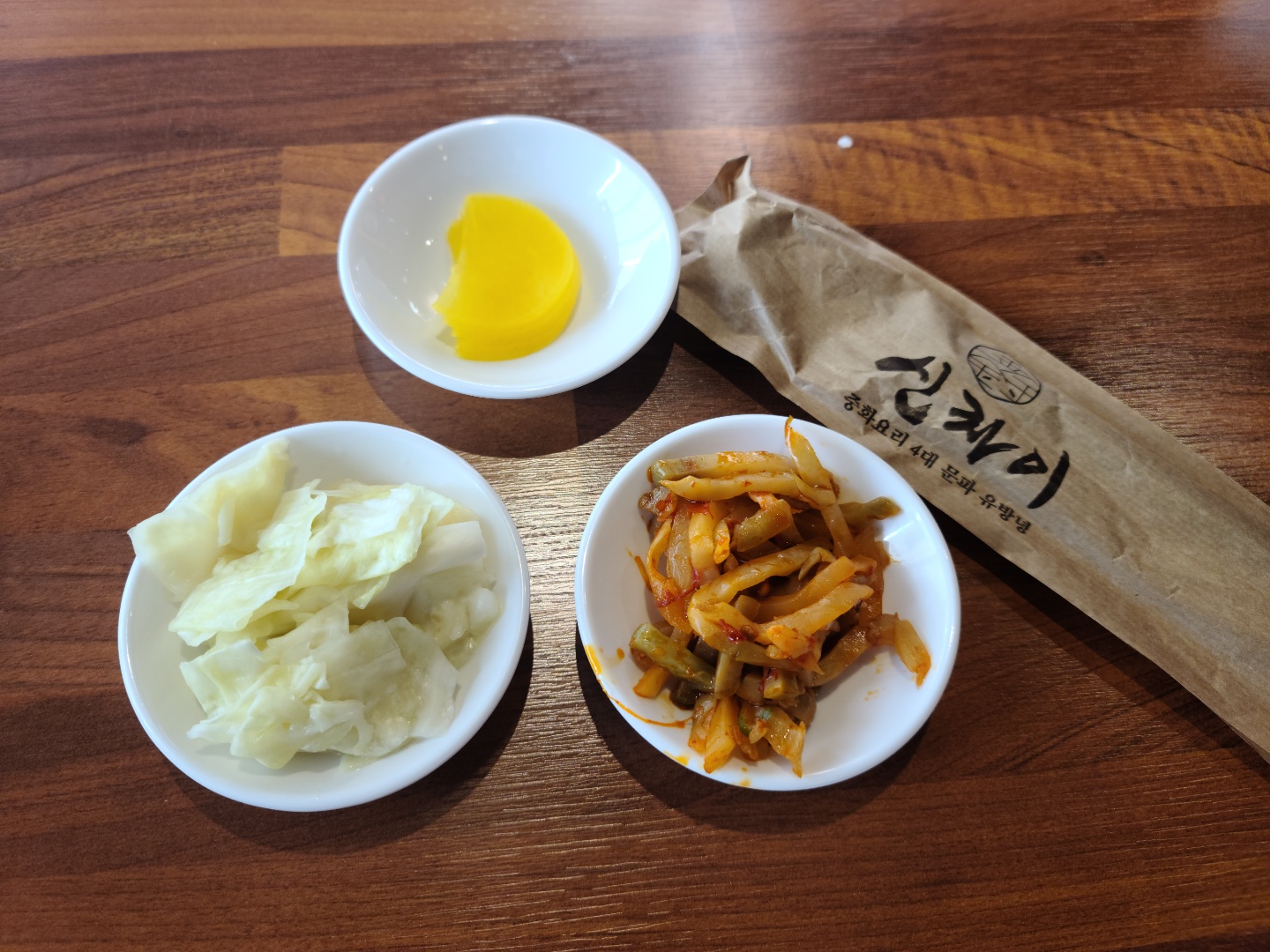기본찬은 간단하다. 양배추 피클과 짜사이, 단무지.