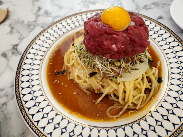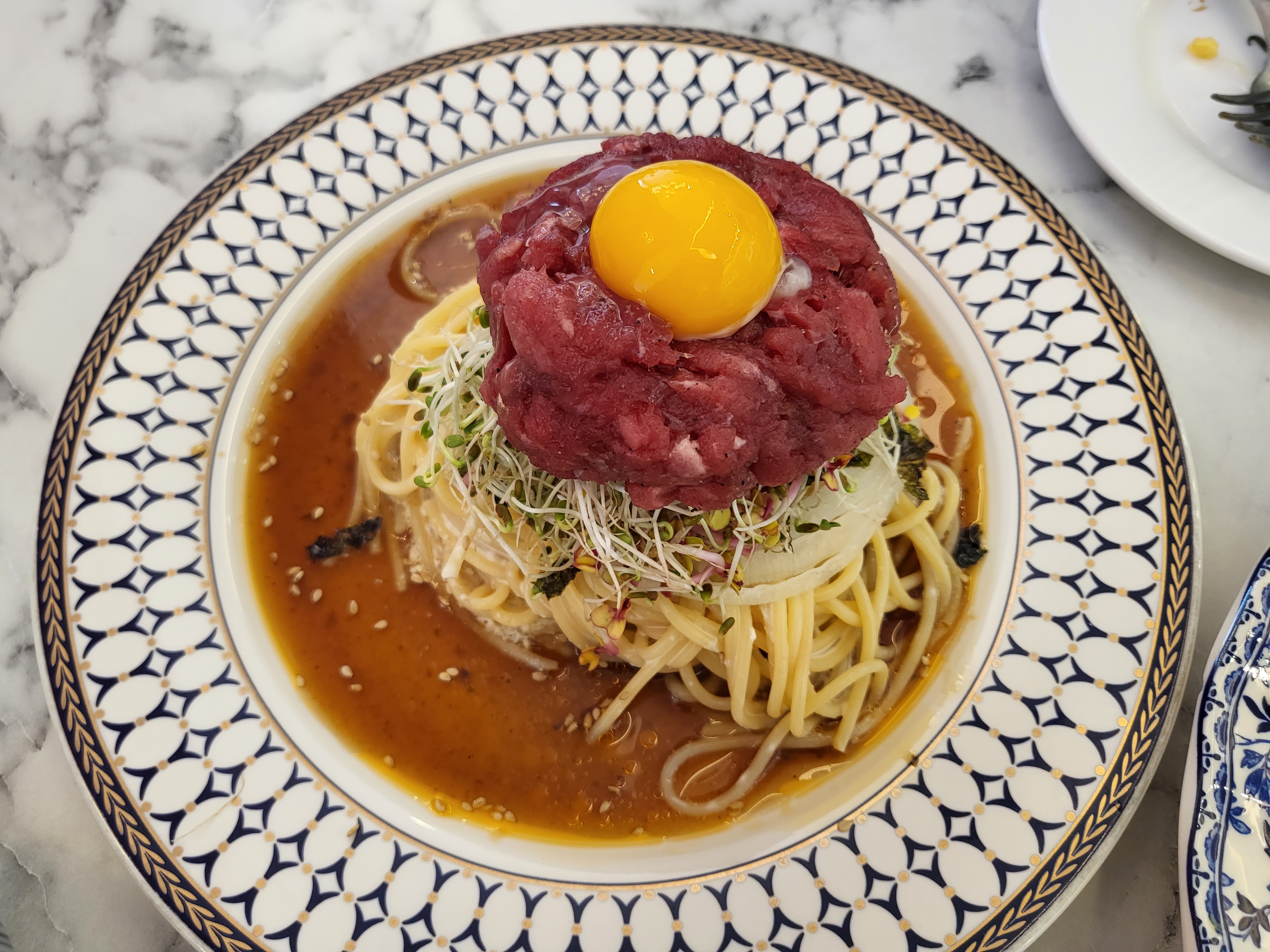 그러나 회심의 메뉴는 들기름육회파스타가 남아있었다.