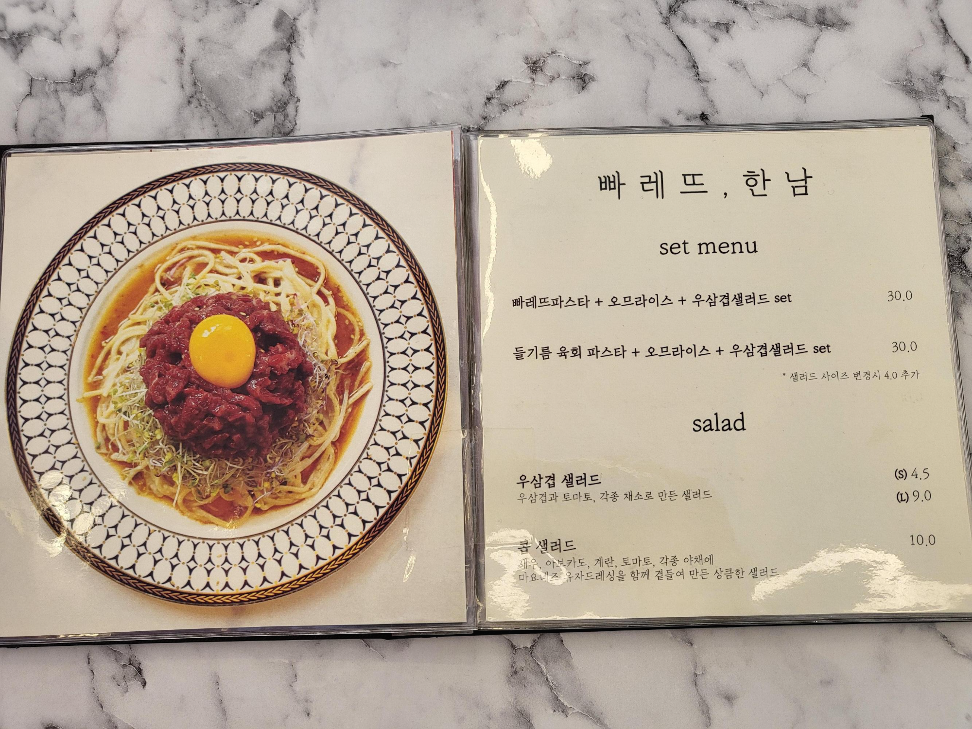 그래서 늘 지나치던 빠레뜨 한남을 미용실에 머리하고나서 밥먹을 시간이 없는지라 들어가게 되었다.