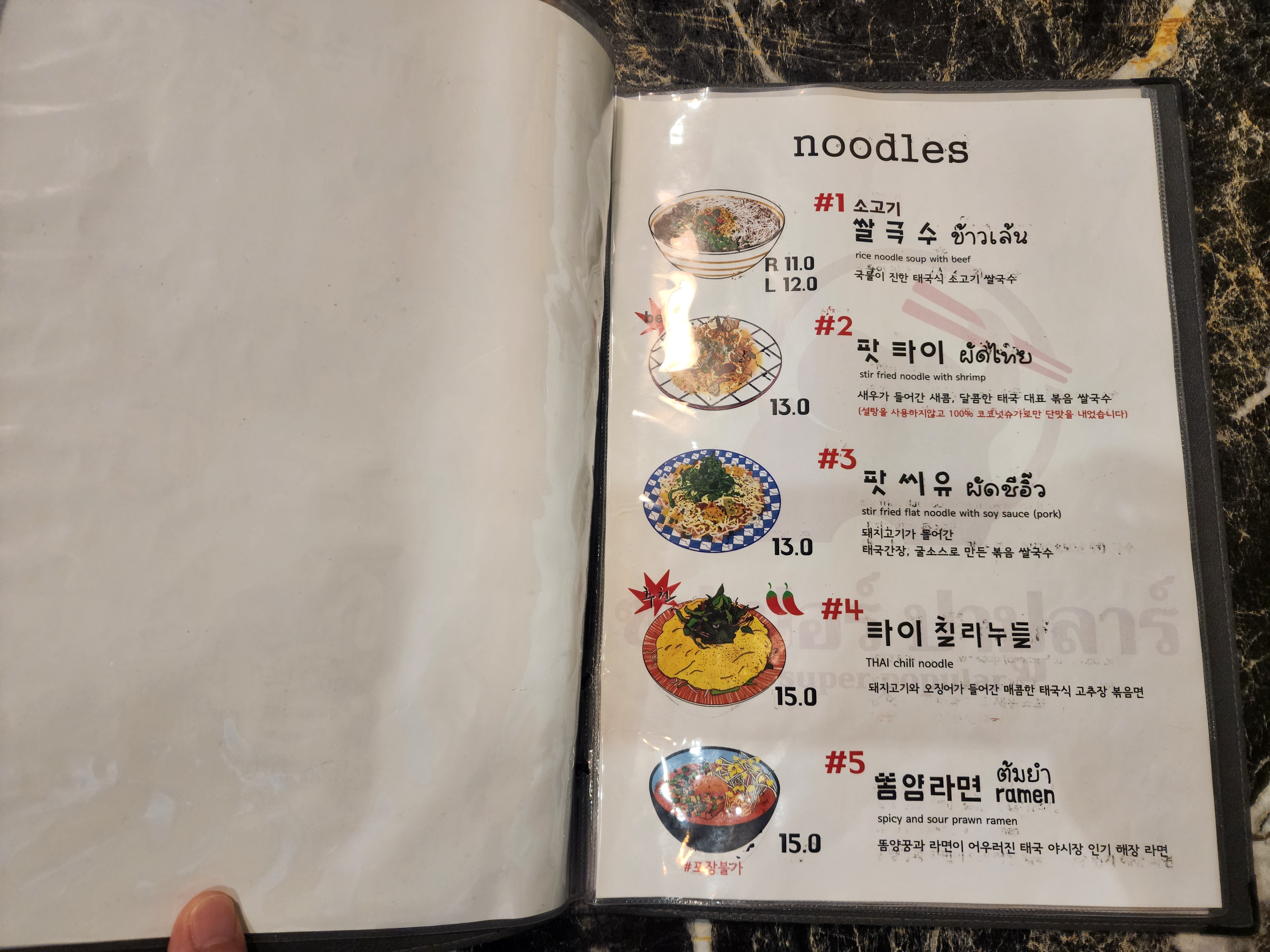 율이 국물이 먹고 싶다고 한 생각이 나서 팟타이 대신에 쌀국수로 선회.