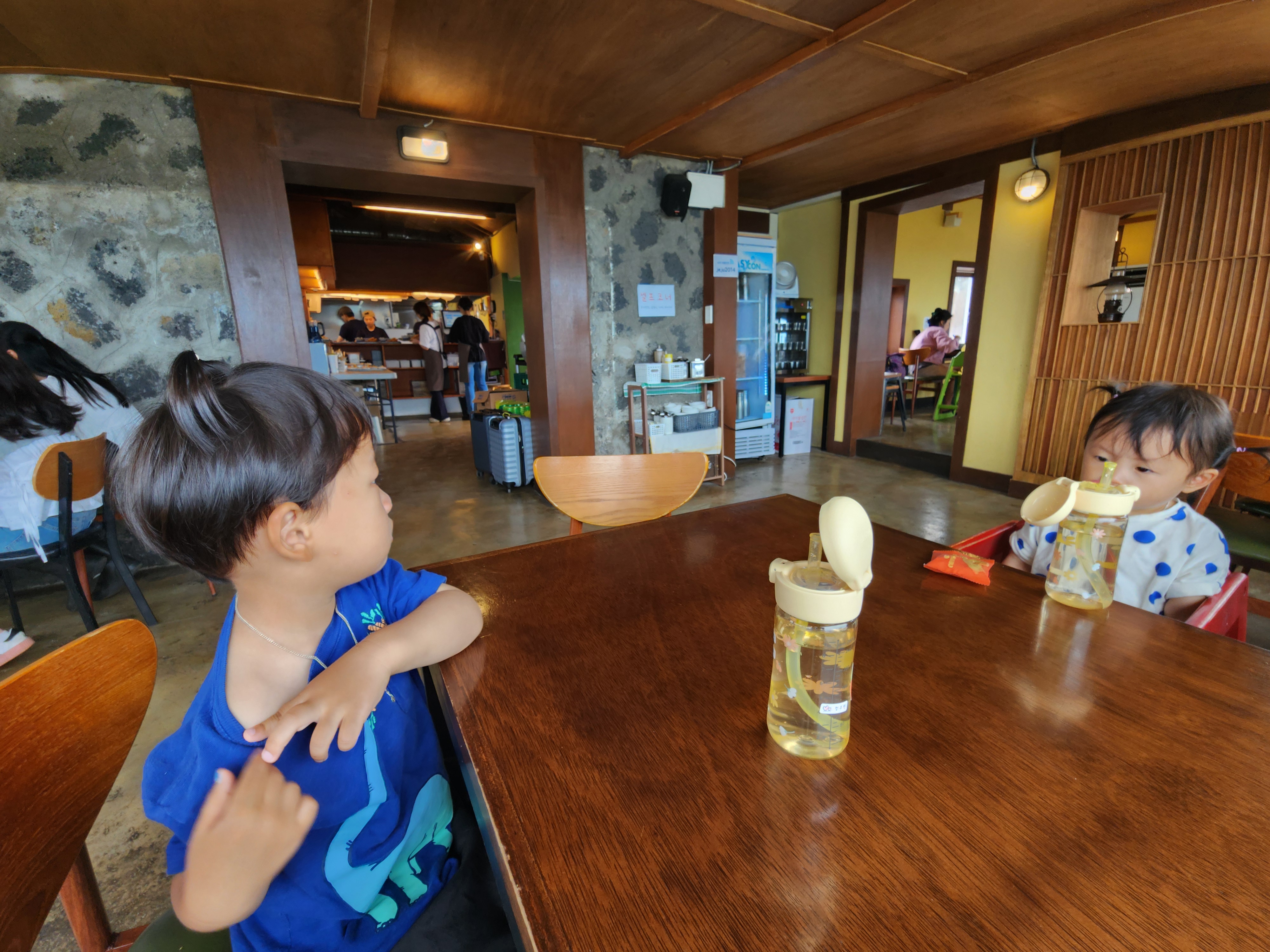 이런상황을 대비해서 어린아기가 있는집은 여행준비물에 꼭 부스터(아가드나 후부스터 같은)를 준비하는 편이 정신건강에 좋다. 이제 제법 어린이 티가 나는 지라 어른의자에서 밥먹는 짬밥이 된 션씨.