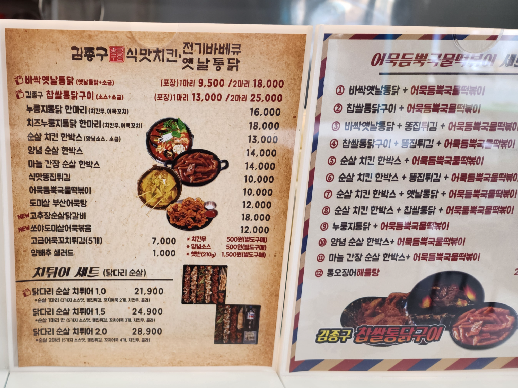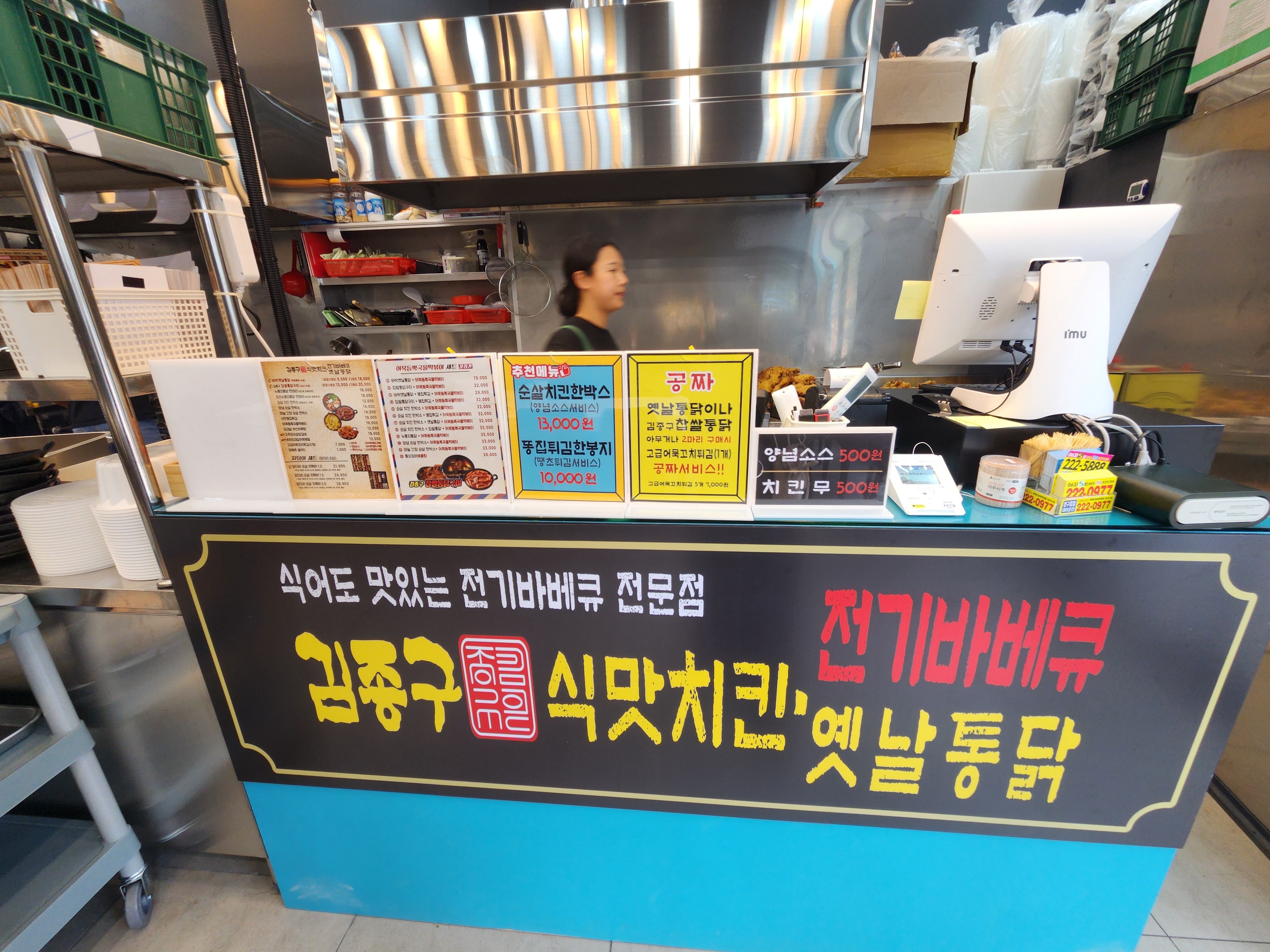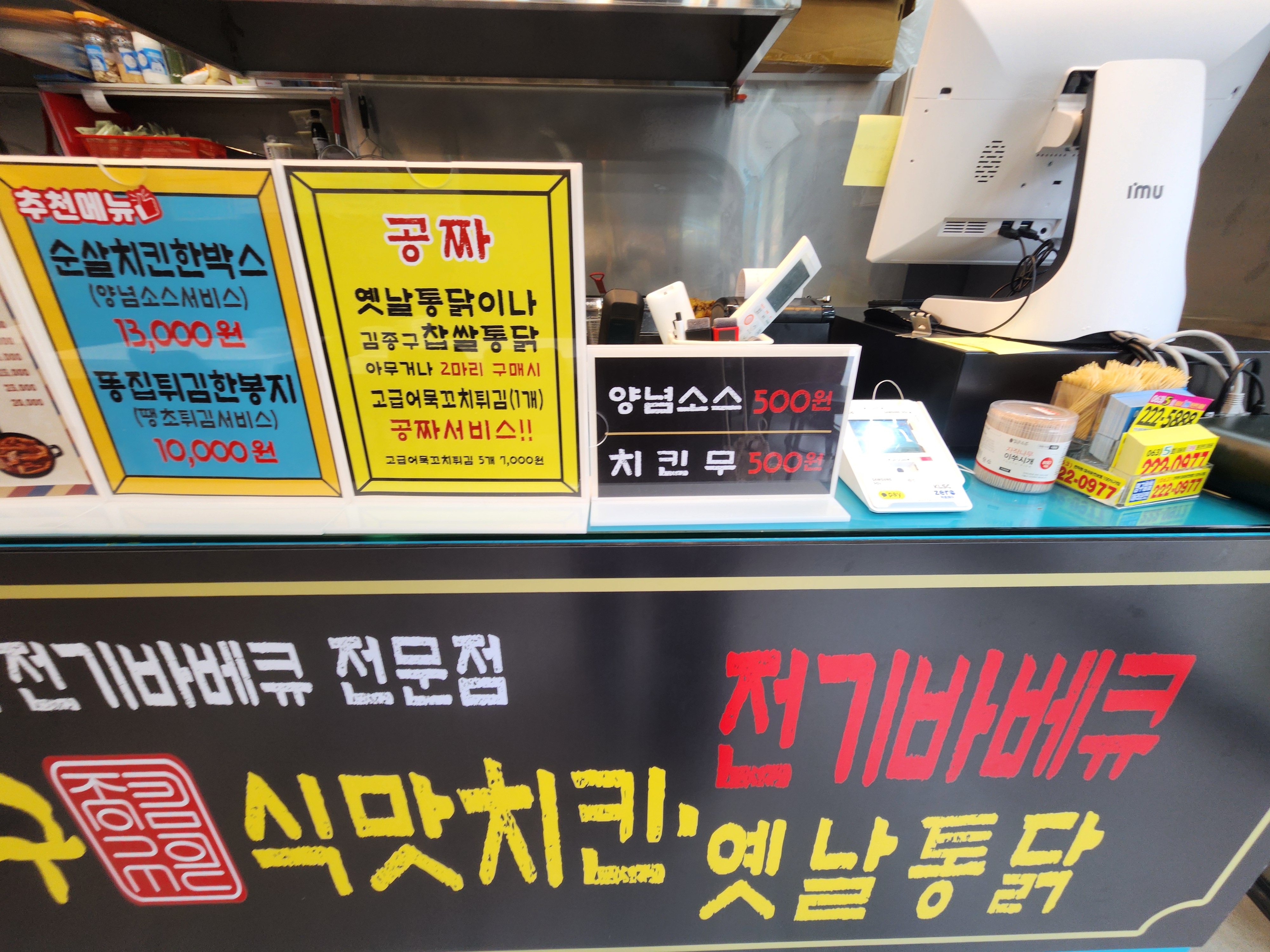 메뉴는 이렇고요.. 순간 옛날통닭의 유혹을 받았지만 역시 오리지널이지. 전기구이로 간다. 전기구이를 찹쌀통닭구이라고 하더라. 오, 찹쌀까지 넣어주고 괜찮네.