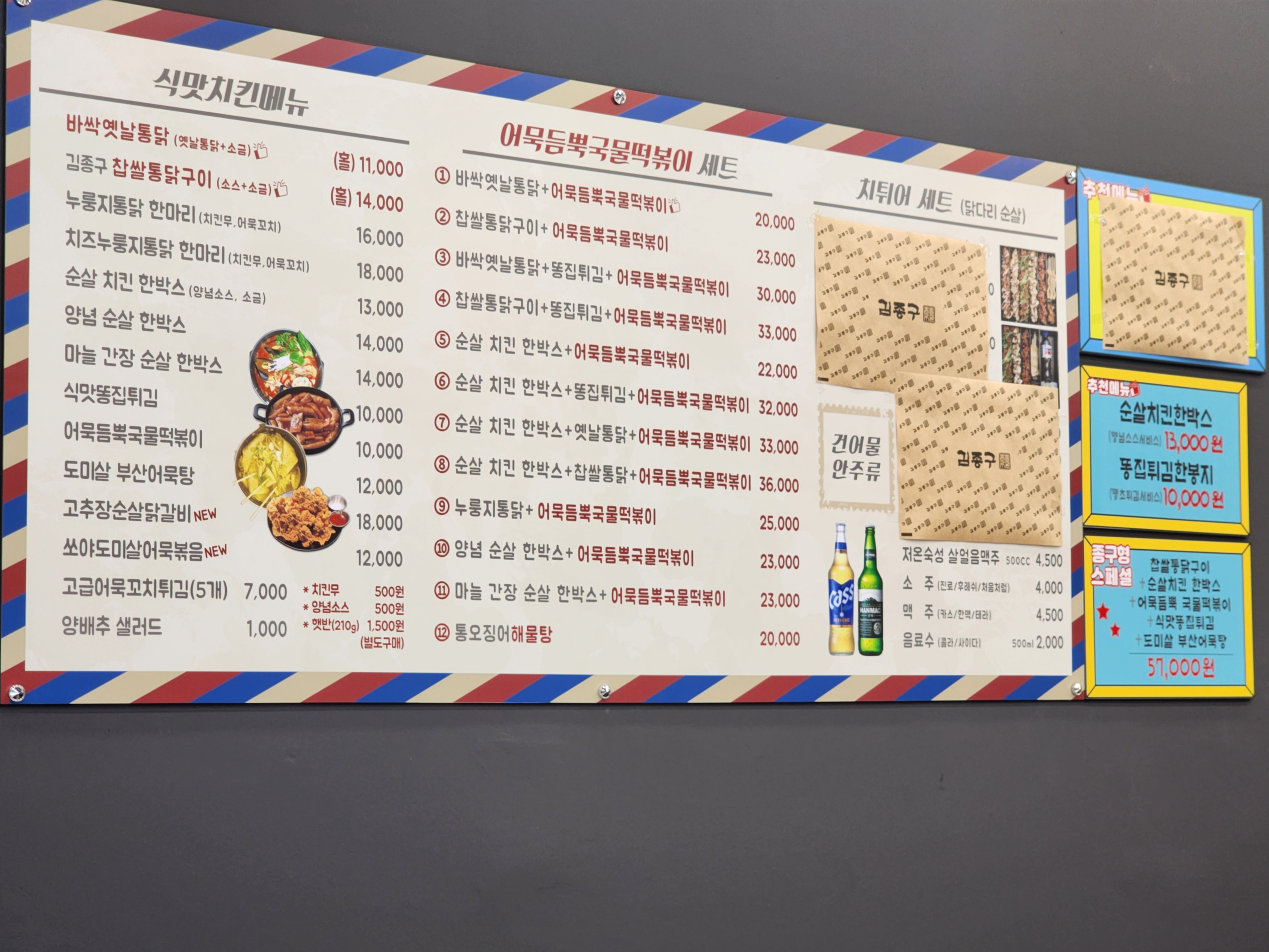 떡볶이 세트를 노리시나 보다.. 메뉴를 보면 확실히 치킨만으로 승부한다기 보단 치킨에 다른 메뉴 곁들여서 한잔하는 곳으로 밀고나가나 보군. 이얘기 했더니 옆에서 탬이 물장사가 최고라고... 누가보면 물장사 해보신줄 알겠어요.