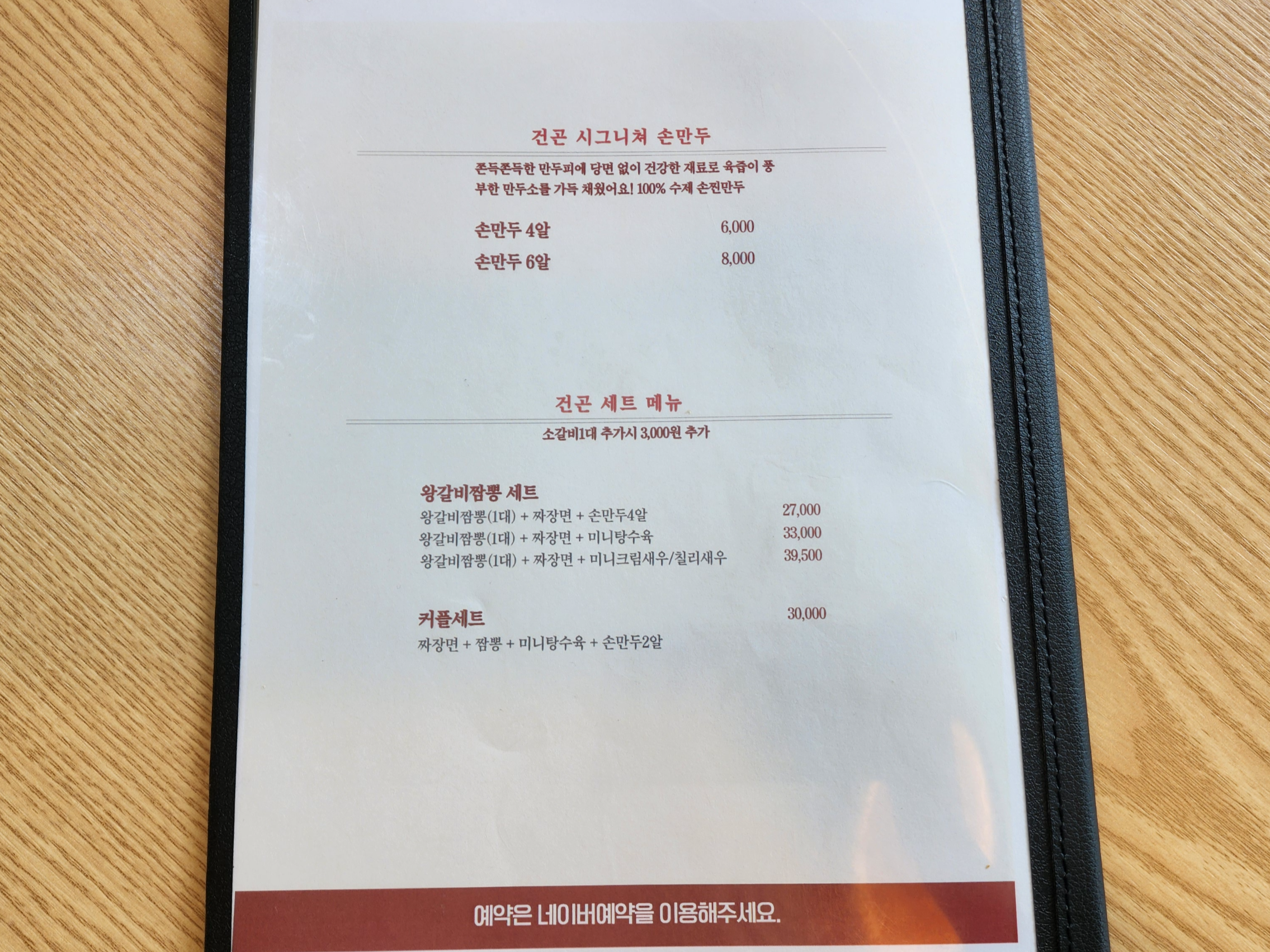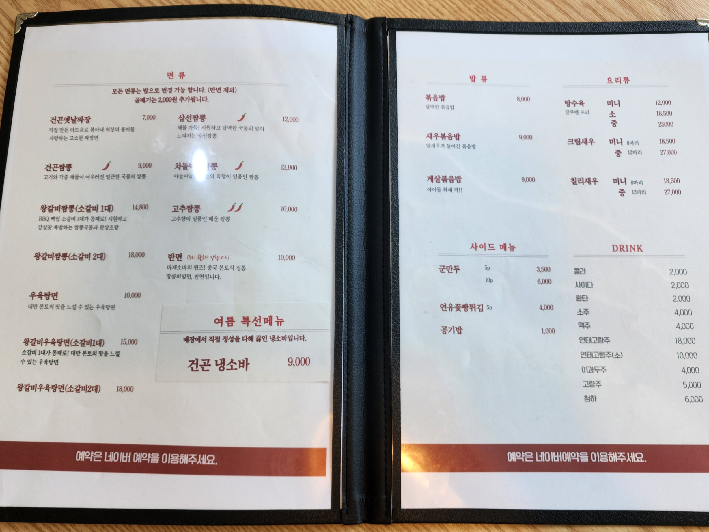 제일 궁금했던 메뉴가 왕갈비짬뽕이랑 반면이었는데 하필이며 이날 반면이 안된다고 했다.