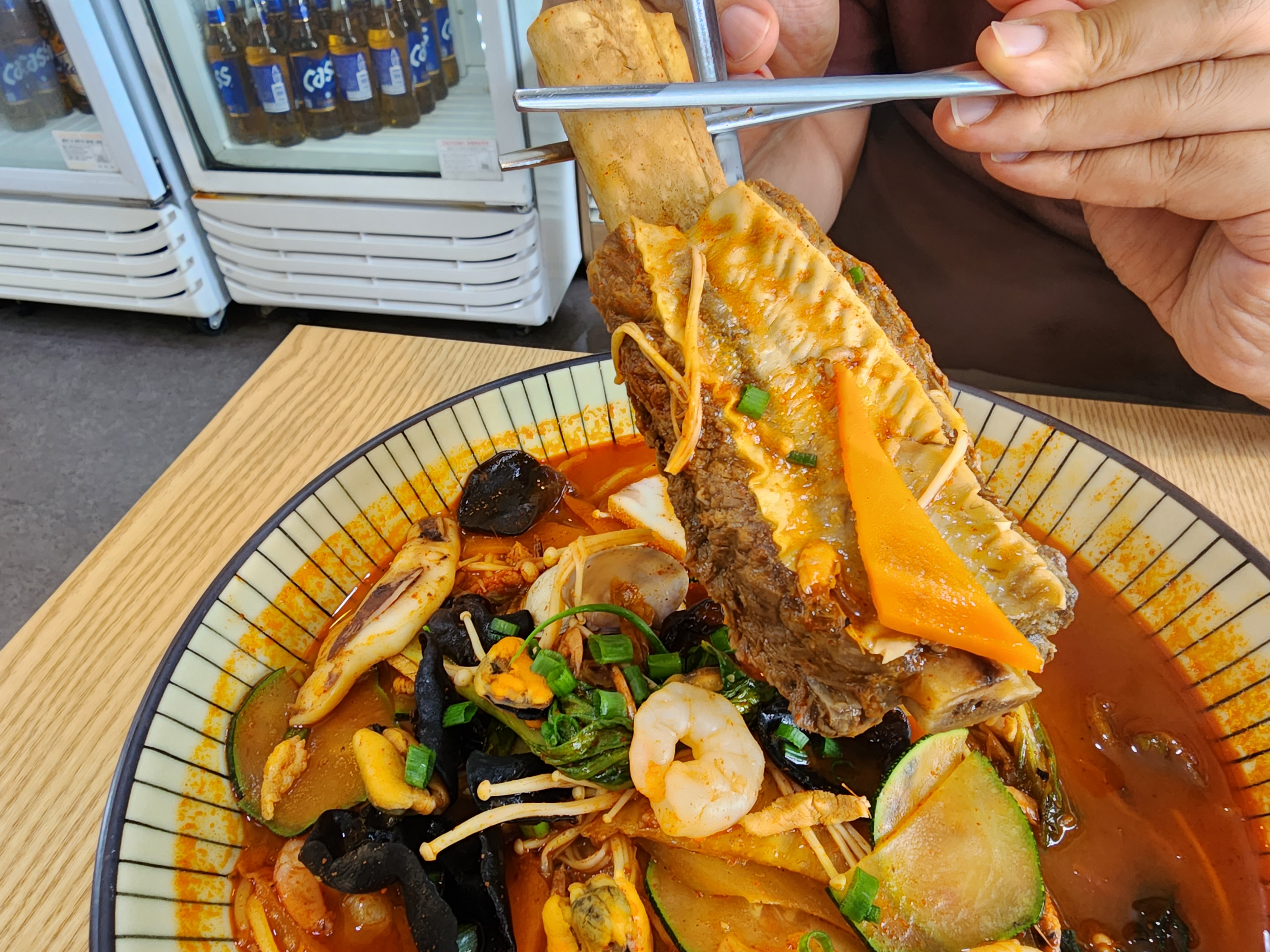 수저까지 이용해서 간신히 들어야 할만큼 큰 갈빗대였는데 원체 기본 내용물이 실한데다 갈비까지 크니까 정말 푸짐했다.