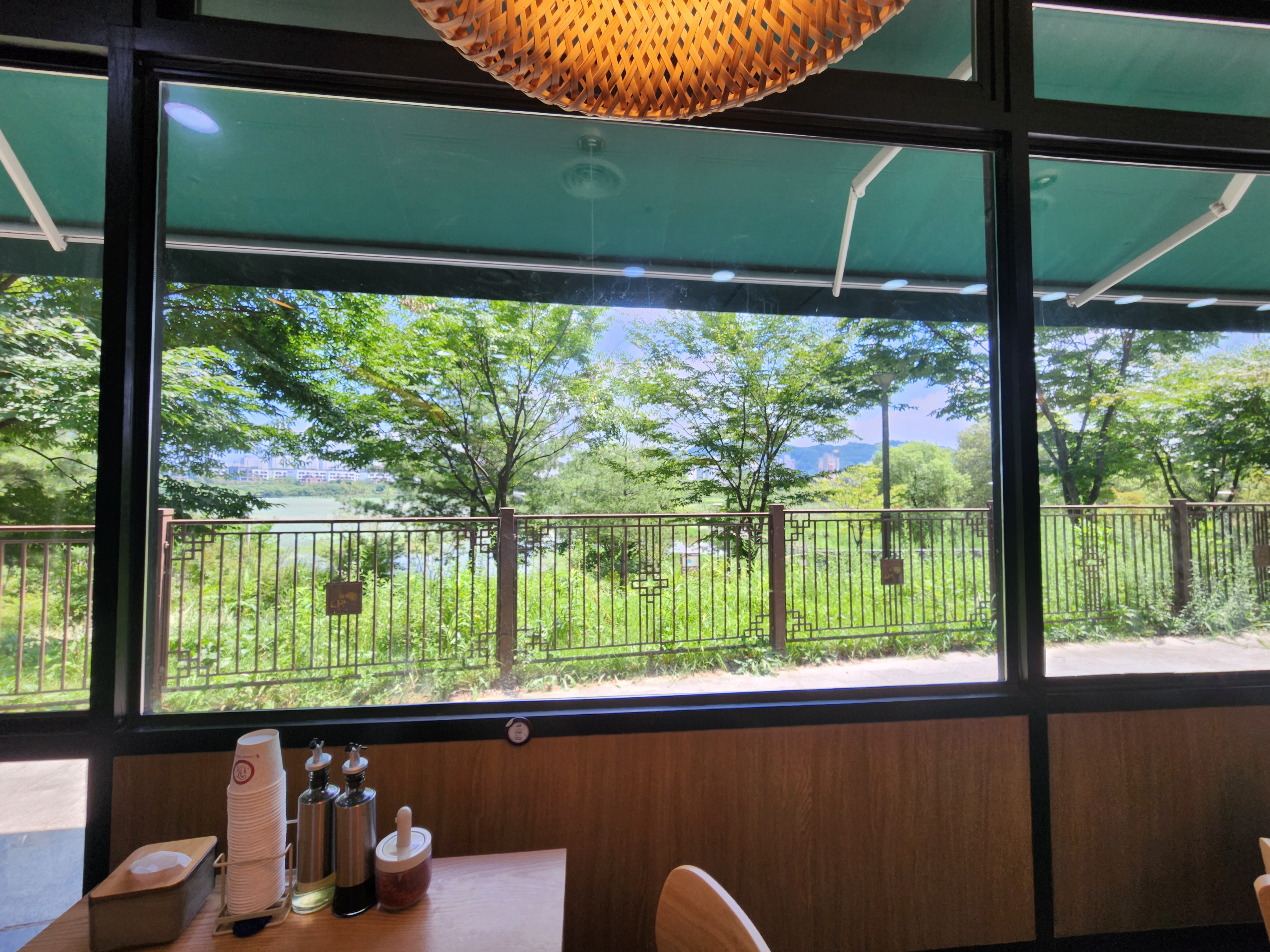 사실 나무에 가려서 기지제가 훤히 보이는 건 아니지만 그래서 초록 안에서 밥먹는 기분이 좋다.