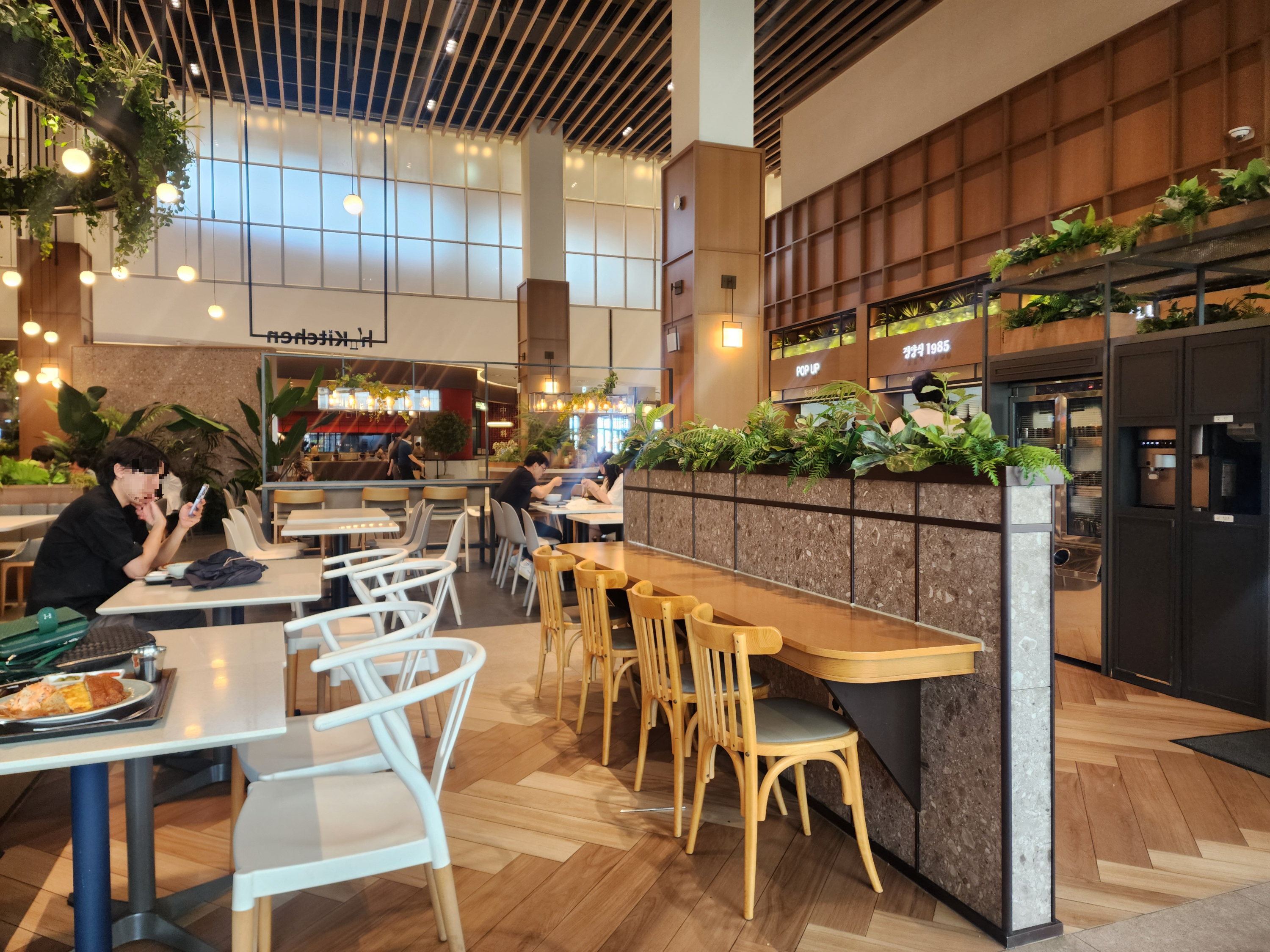 평소에는 단품식당으로 가는데 오늘은 다들 먹고 싶은게 달라서 처음으로 에이치키친이라는 식당가내 푸드코트를 이용해보기로 했다. 주문은 키오스크나 카운터에서 모두 가능해서 편한 쪽으로 이용하면 됐다. (키오스크 단독이 아니라 좋았음. 어르신들 너무 불편하잖아..)
