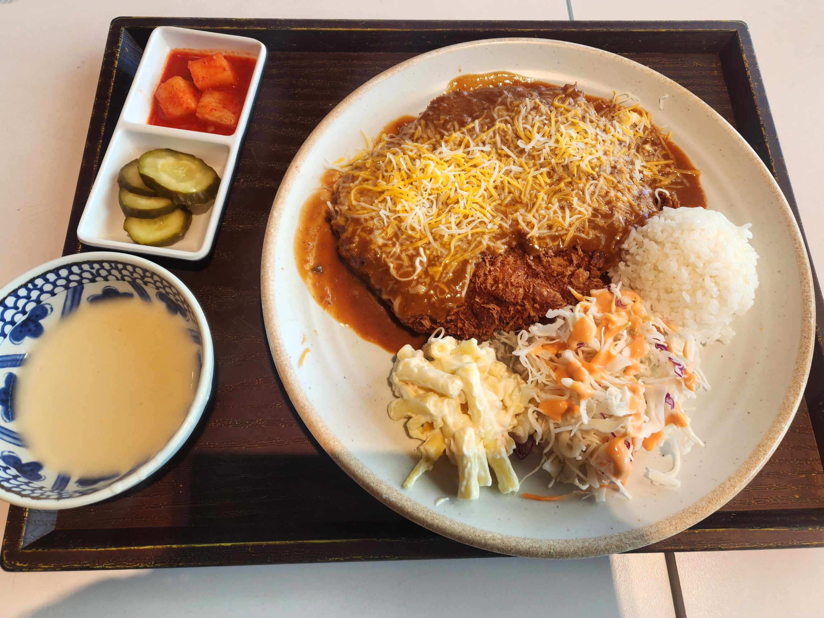 생각보다 실했고 그렇게 소원하던 스프까지 줘서 경양식을 완성시켜줬다. 저 사라다(샐러드 안됨!! 꼭 사라다여야함)까지 있어서 경양식의 기본을 다 갖추었더군.