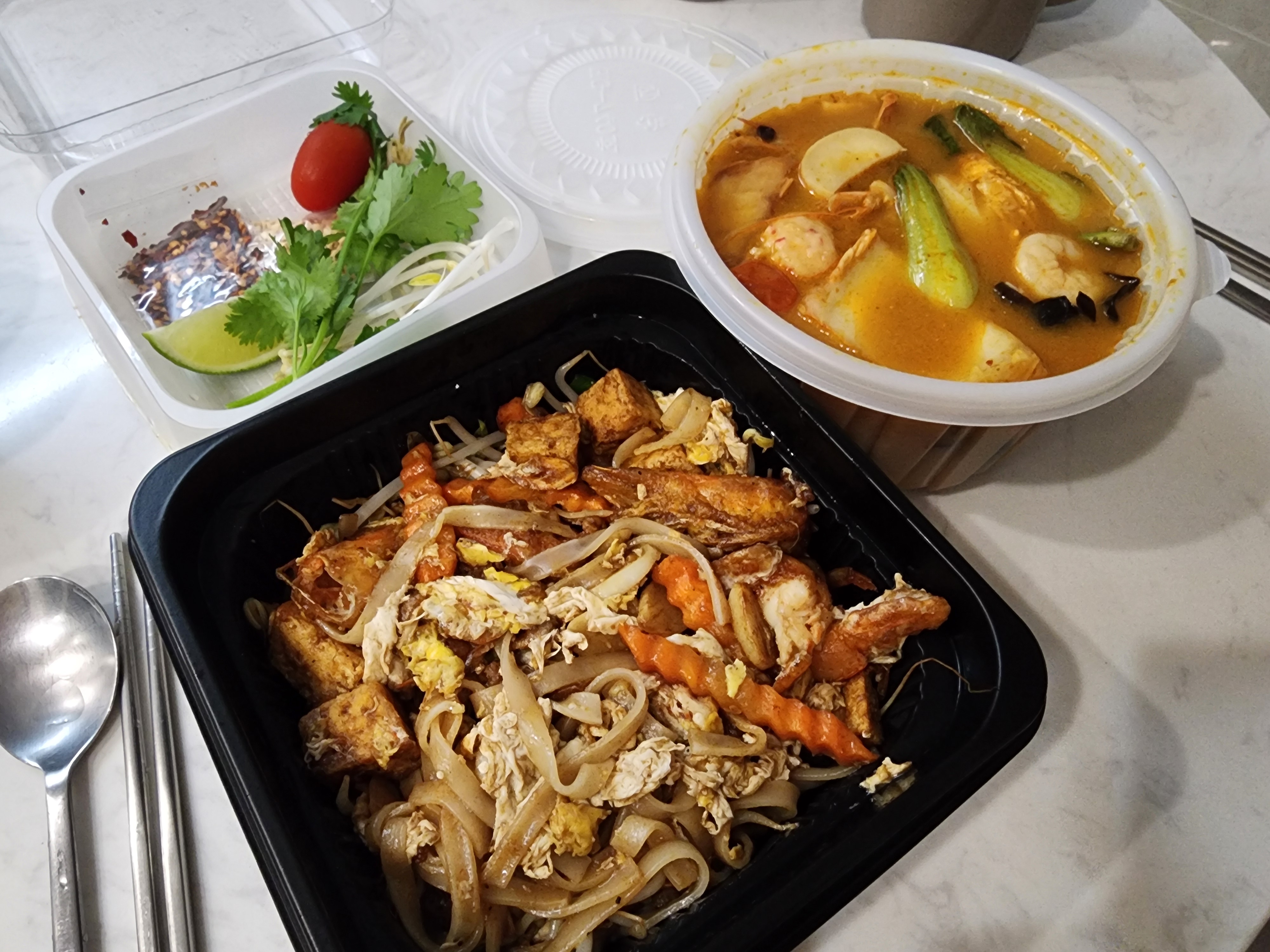 쏨땀 맛집이랬는데 둘이 먹자고 세 개 시키기가 너무 거해서 팟타이랑 똠양꿈만 포장해옴.
